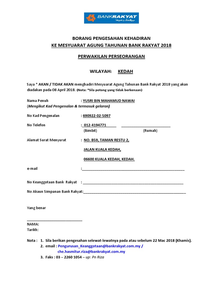 Borang Proksi Agm Individu 2018 2019 Kedah Pdf