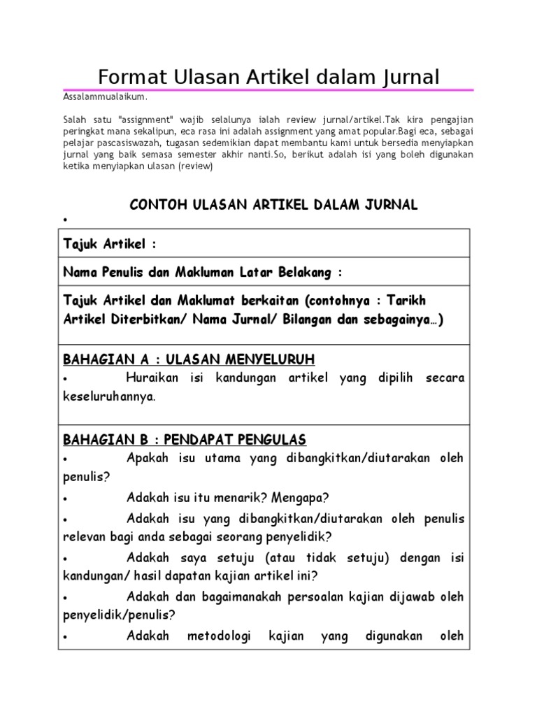Format Ulasan Artikel Dalam Jurnal Pdf