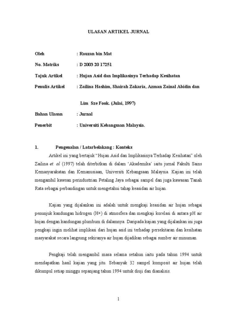 Doc format ulasan artikel dalam jurnal contoh ulasan artikel laporan titas 17 18 tamadun islam dan tamadun asia ukm studocu ulasan. ULASAN JURNAL ARTIKEL Mayr A. Pengertian Ciri Unsur Jenis Struktur Kaidah Dan Contohnya.