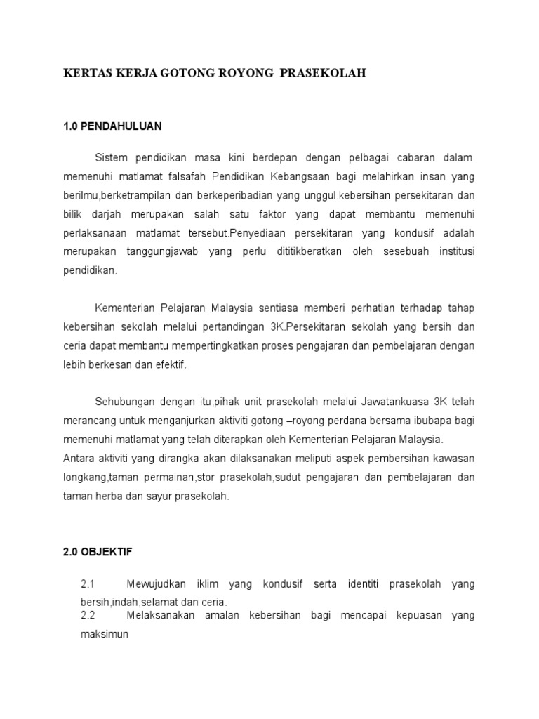 Kertas Kerja Gotong Royong Prasekolah Pdf
